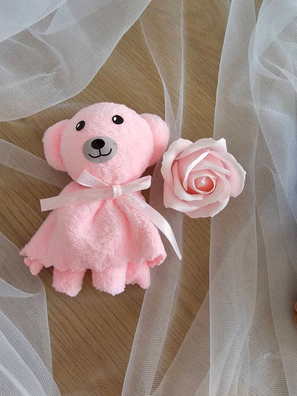 der Teddy ist ein Waschlappen und die Rose ist eine Seife